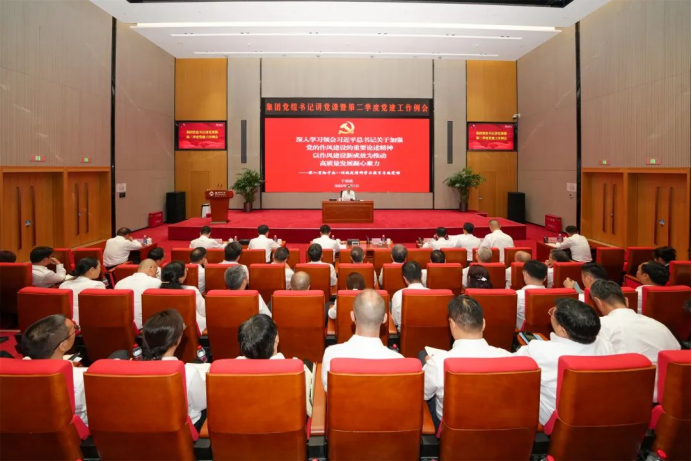 儀式后,集團召開深入學習貫徹中央八項規定精神專題黨課報告會暨第二季度黨建工作例會。黨組書記、董事長于旭波作題為《深入學習領會習近平總書記關于加強黨的作風建設的重要論述精神,以作風建設新成效為推動高質量發展凝心聚力》的黨課報告,并對下半年黨建重點工作進行部署。黨組副書記、總經理崔志成主持會議并宣布2024年度二級公司黨建考核結果。黨組副書記馬可輝宣講了集團黨建工作體系。黨組成員出席會議。
